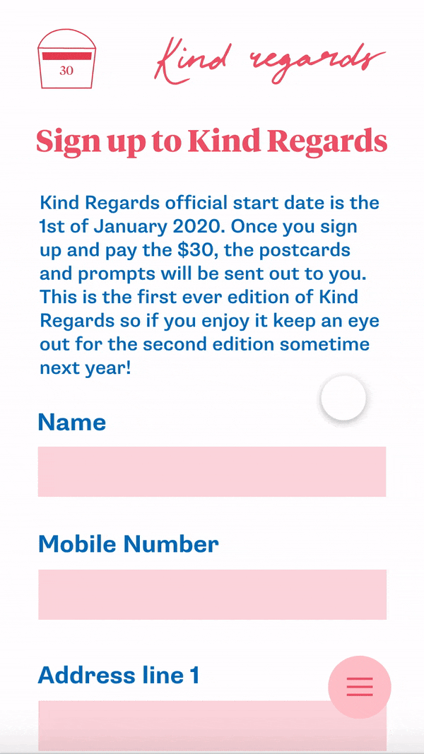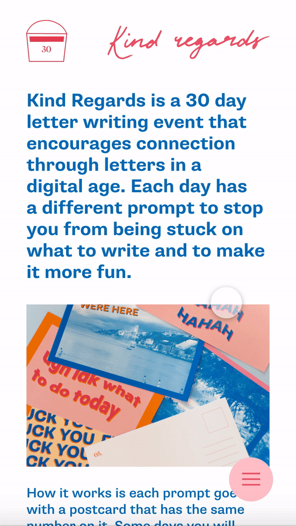 Kind Regards is a multi-touchpoint project that starts with digital advertising and a website to sign up. The website is only a facilitator to enable people to sign up it isn’t a communication tool. To create more of a community and excitement for everyone who signs up, they all start on the same day.